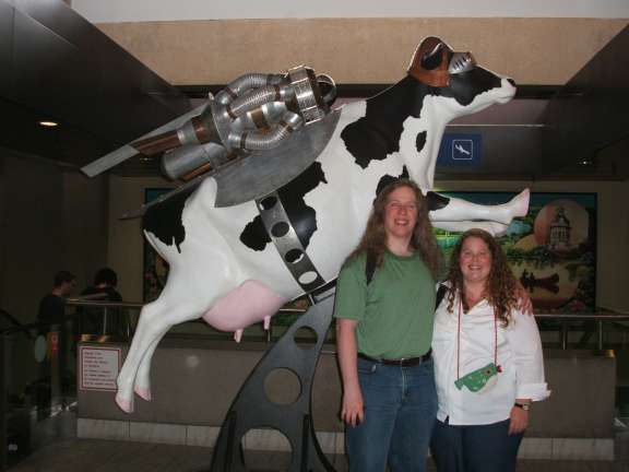 We start out in the Calgary Airport in front of the jet cow.
