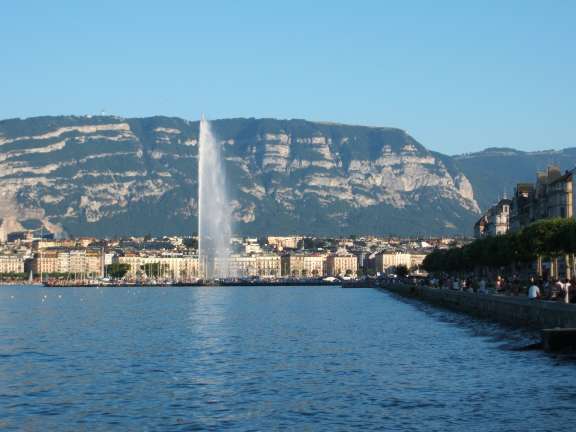 We checked into the Novotel hotel, which was pretty nice, and located fairly close to the lake. Geneva is a nice-looking town in many areas, though a bit run-down "Old Europe" in others. It borders on the lovely Lake Geneva, where there is a pretty spectacular fountain, lots of flowers and some quaint old buildings.