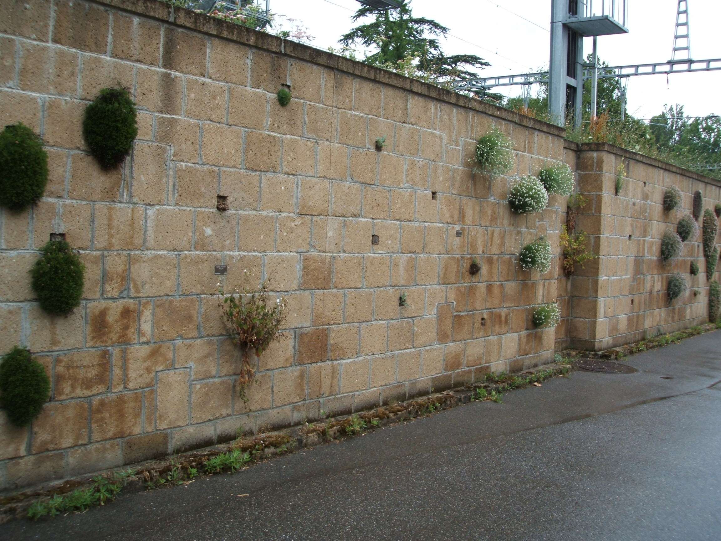 with a brick wall containing all sorts of plants that you can grow out of the crevices.